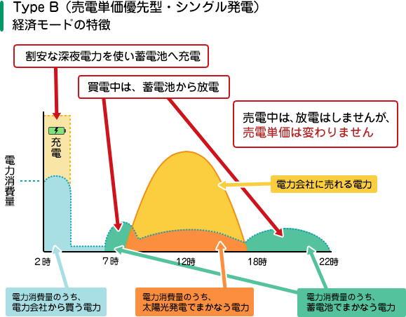 売電中の放電をストップすることにより、売電価格を下げることなく売電でき、朝晩の買電を抑えることができます。